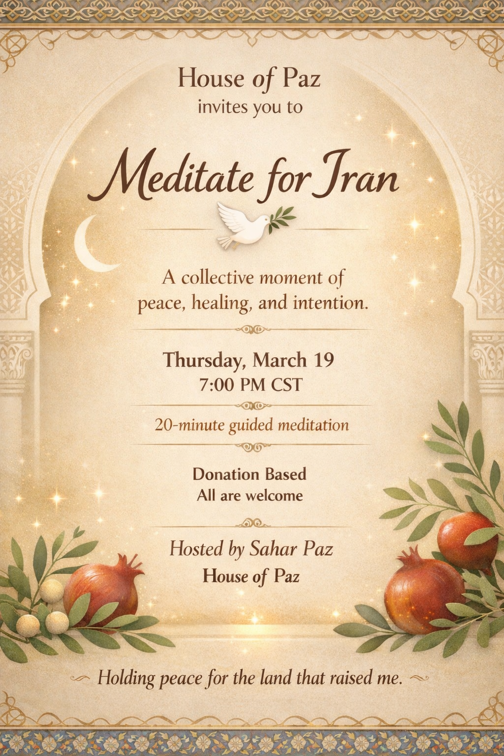 A 20-minute collective meditation to hold peace, protection, and healing for the people and land of Iran.